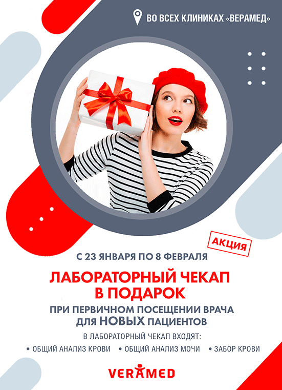 Напоминаем также, что ежемесячно в медицинских центрах «ВЕРАМЕД» проводятся акции, которые позволяют получить лучшие медицинские процедуры по привлекательной цене. Отзывы наших пациентов вы можете прочитать на сайте в соответствующем разделе.